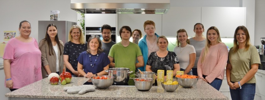 Marmelade statt Ponyhof, auch gut :-) Statt dem gemeinsamen Besuch des Ponyhofs stand an diesem Engagementtag wetterbedingt das Einkochen von Erdbeer- und Marillenmarmelade am Programm in der Tagesstätte Saluto von pro mente in Villach. Das junge engagierte Mitarbeiterinnenteam des Wirtschaftsprüfungsunternehmens EY war in die Einrichtung gekommen – und weil an diesem Tag nun genug helfende Hände vor Ort waren, wurde nach einem gemeinsamen Frühstück von einer Gruppe auch Tonstelen produziert. Alles bereit für den nächsten Bazar, der dem Saluto-Team auch wieder Einnahmen für die Aktivitäten mit den Jugendlichen bringt.