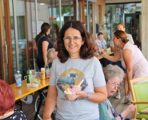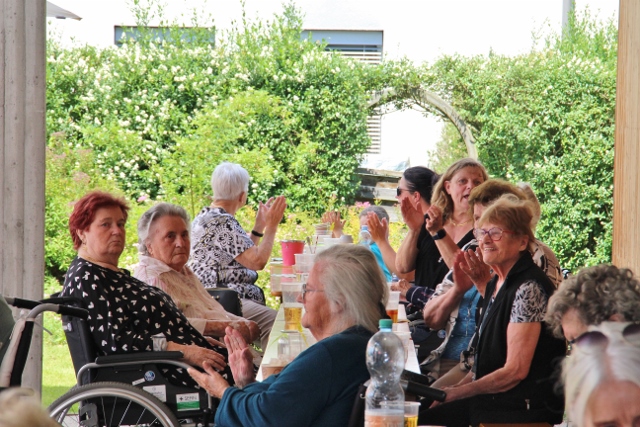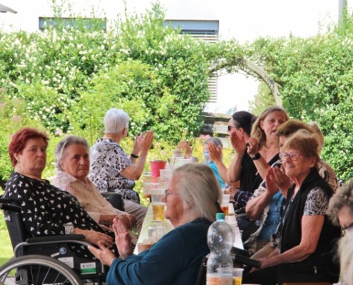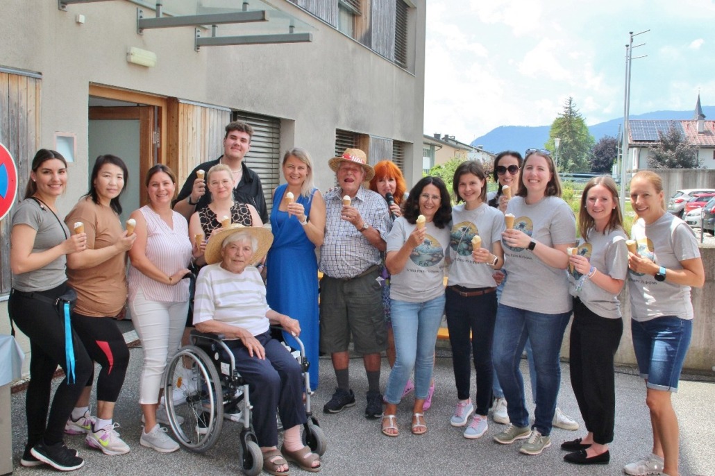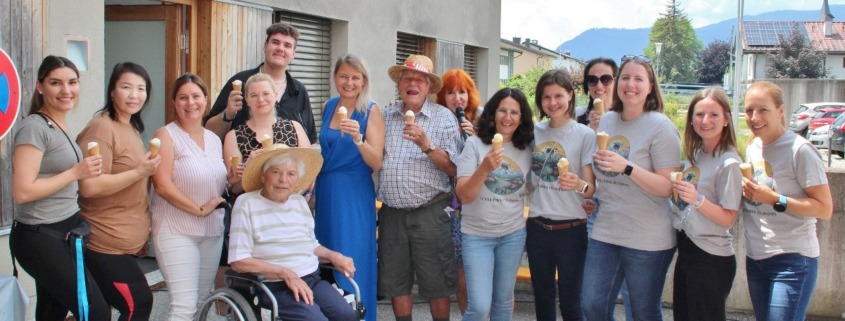 Sommer, Sonne, Sommerfest, Eis, Wassermelonenbowle und Musik – all das und noch mehr gab es beim diesjährigen Sommerfest im Pflegewohnheim der Diakonie de La Tour in Maria Gail. Jedes Jahr können die betagten Damen und Herren hier der Beginn des Sommers dank des engagierten Pflegeteams so richtig feiern. Und damit dies auch heuer gut möglich ist, war auch eine Runde von Kolleginnen der FH Kärnten im Rahmen ihres Engagementtag-Projektes mit im Einsatz und hat mitgeholfen, vorzubereiten, Bowle und Eis auszuteilen, aber vor allem auch richtig mitzufeiern. Es wurde gesungen und getanzt und das Leben gefeiert – zauberhaft war es! Und das war auch das Motto des Festes in diesem Jahr…