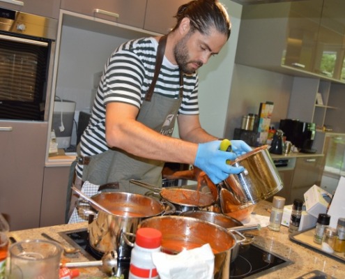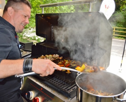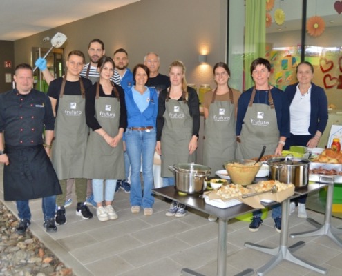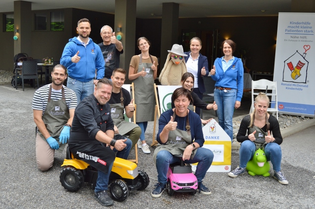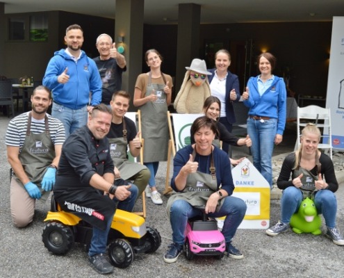 Ein Grillfest für die Familien der kranken Kinder, die Freunde und Partner des Ronald McDonalds Kinderhilfe Hauses in Graz nahe der Universitätsklinik sollte es werden, das war der Wunsch, der das Netzwerkbüro im Vorfeld der diesjährigen VZ Engagementtage erreichte. Sofort hat sich ein Team der Frutura, die mit dem Haus der Kinderhilfe dazu gemeldet, das Grillfest auszurichten. Und so kamen die Kolleginnen und Kollegen des großen Gemüseproduzenten und -Logistikers wohlbepackt nach Graz. Im Gepäck zwei große Griller – ein Frutura-Mitarbeiter ist geprüfter Grillmeister mit eigener Grillschule, was die Gäste später erfreuen wird. Dazu bestes Fleisch und natürlich jede Menge Gemüse, Kräuter und Obst. Daraus zaubert das Team den ganzen Vormittag über eine köstliche Tomatensuppe, Grillgemüse, Salate und Saucen, sogar selbstgemachte Zuckerminze und als Nachspeise für Groß und Klein dürfen die Marshmallow-Spieße nicht fehlen, die am Grill kurz angebräunt werden und den Magen schließen.