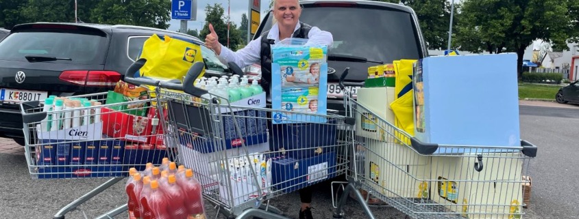 Mehl, Nudeln, Reis & Co…2.0 – alles wird benötigt für die Menschen in Not, denen oftmals zu wenig Geld für den Einkauf des täglichen Bedarfs bleibt und die flächendeckend von den Sozialmärkten Kärnten betreut werden. Vor allem haltbare Lebensmittel und Hygieneartikel werden dringend benötigt. Und die hat Martina Inzko, Assistentin des Vorstandes und Koordinatorin für so manches Verantwortung zeigen! Engagement nach einer firmeninternen Sammelaktion in großer Menge auch persönlich in den SozialMarkt in Klagenfurt gebracht. „Ich habe vorher nicht gewusst, wie wichtig und teuer beispielsweise Babywindeln sind, da haben wir gleich einige Packungen dazugekauft“, erzählt Inzko bei der Übergabe an den Geschäftsführerin von SOMA Kärnten Theres Leber.