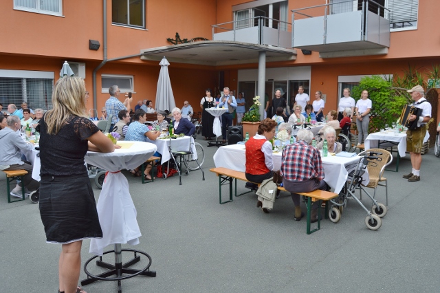 Was gibt es Schöneres als ein Sommerfest mit Gegrilltem. Das haben sich die BewohnerInnen des Pflegewohnhauses in Lannach gedacht – und ein Team des Intercity Hotels aus Graz war sofort dabei mit der Zusage: „Wir kommen wieder und grillen für euch.“ Schon im vergangenen Jahr gab es dank der Zusammenarbeit der beiden Partner eine Buschenschenke im Haus, heuer wurde nun der Griller angeworfen. Es war ein tolles Fest mit vielen herzlichen Menschen – den MitarbeiterInnen des Hotels rund um Geschäftsführer Stefan Willensdorfer und den PflegerInnen und BewohnerInnen des Altenheimes allen voran Hausleiter Josef Url. Auch Musik gab es dank des Intercity Hotels wieder… Schön war das!