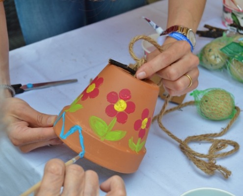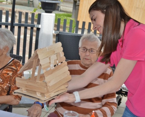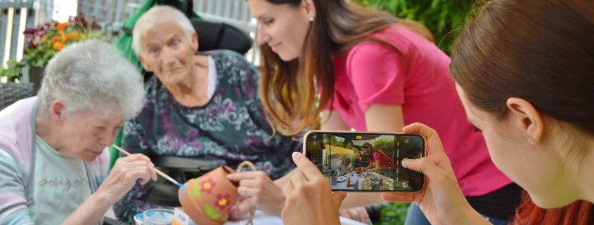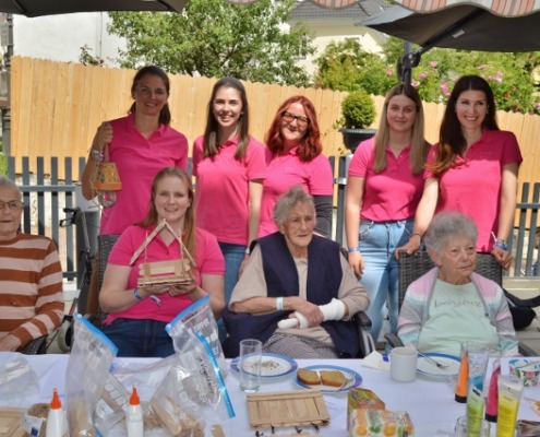 Klein, fein und kreativ war das Engagementtag-Projekt des Mitarbeiterinnenteams der Personalentwicklung der Kelag im Pflegewohnhaus Theresia der Carits Kärnten in Feldkirchen. Mit den alten Menschen, die im Haus betreut werden und wohnen, wurden Vogelhäuschen aus Tontöpfen gebastelt, kunstvoll bemalt und mit Meisenkugeln gefüllt sowie ein tolles Insektenhotel gebaut. Gemeinsam wurden die kleinen kunstvollen Bau- und Kunstwerke dann im Garten angebracht. Nun können sich die betagten Damen und Herren von ihren Fenstern aus oder auch bei der täglichen Runde durch den Garten an den gefiederten Freunden erfreuen und sie beim Futterholen beobachten. Das tut den Menschen gut und der Natur ebenfalls. Und wirklich Spaß gemacht hat es obendrein.