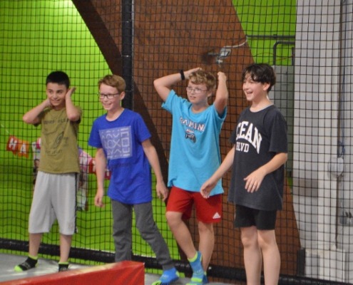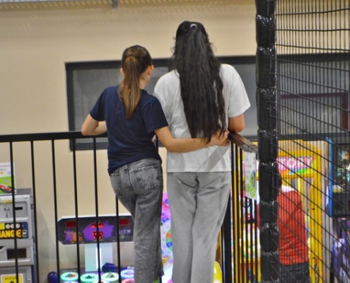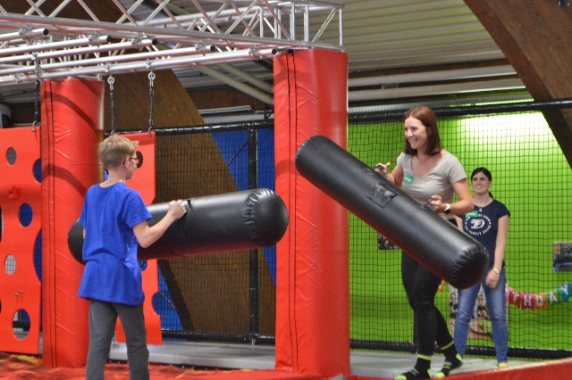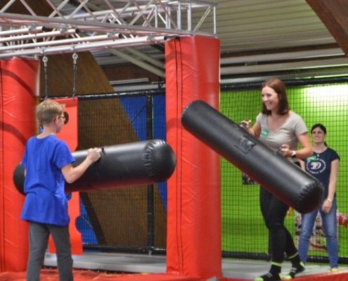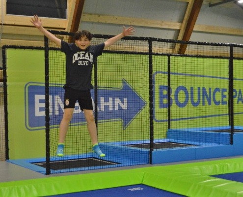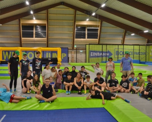 Freudiges Springen – Nach dem Zusammentreffen in Wolfsberg mit einem gemeinsamen Essen im Lerncafe Mondi der Caritas Kärnten in Wolfsberg startete der Bus aufgrund der schlechten Wettervorhersage nicht wie geplant nach Klopein, sondern brachte die 25 Kinder und Jugendlichen und die Mitarbeitenden der Firma Kelag nach Klagenfurt in den Jumpdome. Der Energie und Freude in den Augen der Kinder ließ nicht vermuten, dass es eigentlich geplant war in den Waldseilpark zu fahren. Die seltene Möglichkeit in einen Trampolinpark zu gehen, wurde bestens angenommen und es wurde ausgiebig gemeinsam gesprungen. Hindernisse wurden überwunden, aus drei Metern mutig gesprungen, auf einem schmalen Übergang miteinander gekämpft und sich in die Schnitzelgrube fallen gelassen. Das sportliche Mitarbeiter:innenteam der Kelag beteiligte sich am ausgelassenes Treiben und in manchen Momenten fühlte sich manche:r wieder wie als Kind :-)