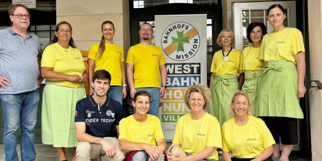 Mit guter Laune und eigenen Rezepten im Gepäck übernahm am Freitag die Stadt Villach die Küche in der Westbahnhoffnung. Neben den Hygieneregeln wurde vor allem die oberste Regel „Mit Freude kochen“ vom 9-köpfigen engagierten Mitarbeiter:innenteam des Magistrat eingehalten. Während eine gute Suppe langsam köchelte, jede Menge Butter genüsslich dahinschmolz, flitzte das fröhliche Stadt-Team hochmotiviert durch die immer heißer werdende Küche und bereitete ein nahrhaftes Mittagessen mit allem Drum und Dran für die bald eintreffenden Gäste vor. Der verführerische Marillenkuchen ging natürlich weg bis auf den letzten Brösel und auch sonst mundete das Menü allen BesucherInnen, es sind Menschen in Not, die hier am Villacher Westbahnhof Unterstützung bekommen, ausgezeichnet.
