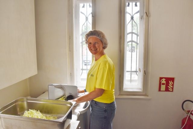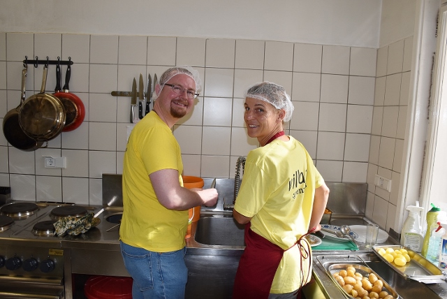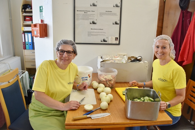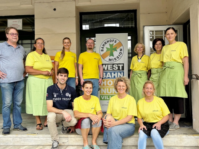 Mit guter Laune und eigenen Rezepten im Gepäck übernahm am Freitag die Stadt Villach die Küche in der Westbahnhoffnung. Neben den Hygieneregeln wurde vor allem die oberste Regel „Mit Freude kochen“ vom 9-köpfigen engagierten Mitarbeiter:innenteam des Magistrat eingehalten. Während eine gute Suppe langsam köchelte, jede Menge Butter genüsslich dahinschmolz, flitzte das fröhliche Stadt-Team hochmotiviert durch die immer heißer werdende Küche und bereitete ein nahrhaftes Mittagessen mit allem Drum und Dran für die bald eintreffenden Gäste vor. Der verführerische Marillenkuchen ging natürlich weg bis auf den letzten Brösel und auch sonst mundete das Menü allen BesucherInnen, es sind Menschen in Not, die hier am Villacher Westbahnhof Unterstützung bekommen, ausgezeichnet.