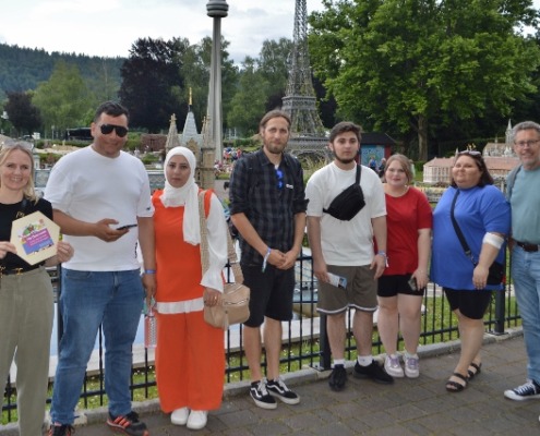 Bei strahlendem Sonnenschein trafen sind zwei Mitarbeiter:innen der Firma Sto an diesem Nachmittag mit Familien der Caritas Grundversorgung beim Minimundus Klagenfurt. Neugierig und freudig wurden die kleinen großen Sehenswürdigkeiten aus aller Welt gemeinsam angeschaut, Fotos gemacht und geplaudert. Es ist keine Selbstverständlichkeit, dass den Geflüchteten Wohlwollen und positive Momente geschenkt werden, daher war es umso schöner, einen Tag befreit und glücklich miteinander verbringen zu können. Der leicht einsetzende Regen konnte die gute Stimmung auch nicht trüben. Alles in allem war es ein gelungenes VZ Engagementprojekt 2024!