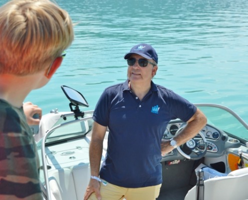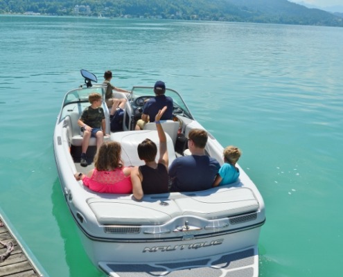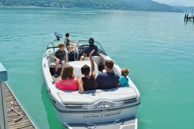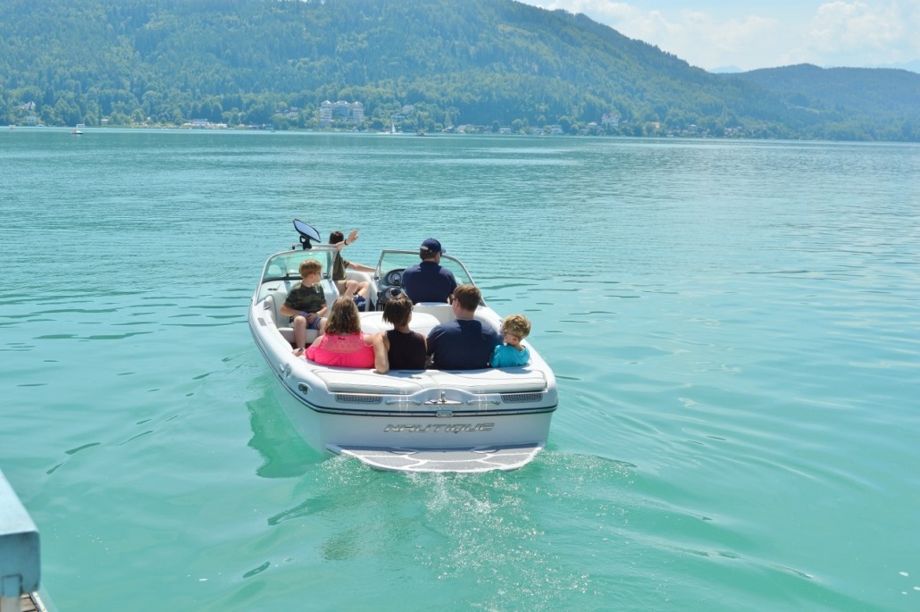 Wie schnell fährt eigentlich ein Motorboot? Kann man ganz vorne sitzen? Braucht man dafür einen Führerschein und darf ich einmal lenken? 1000 Fragen gab es und eine große Aufregung war das, als die Wietersdorfer Gruppe für die Kinder der WG kids der Diakonie de La Tour aus Klagenfurt-Harbach einen Nachmittag am Wörthersee ermöglicht hat. Einmal mit einem Motorboot zu fahren, war ein großer Wunsch der Buben und Mädchen – und der wurde nun im Rahmen eines VZ Engagementtages tatsächlich Wirklichkeit. Stephan Kern war ein überaus umsichtiger Kapitän. „Alles hört auch mein Kommando“, das haben die Kinder ihm gleich zu Beginn beim Einstieg beim Lido in der Klagenfurter Ostbucht versprochen. Denn sicher ist sicher – auch wenn der Himmel blau, das Wasser ruhig, türkis und klar und der Sommertag einfach ein Traum war.