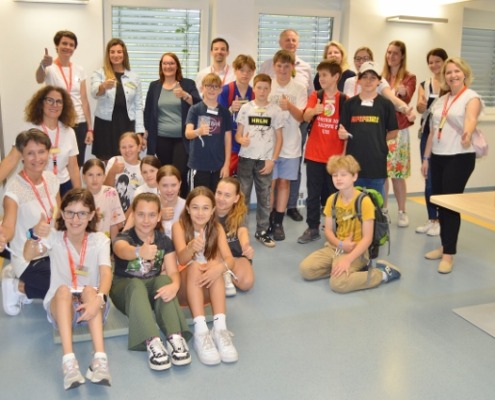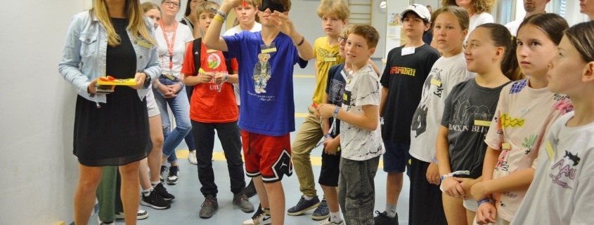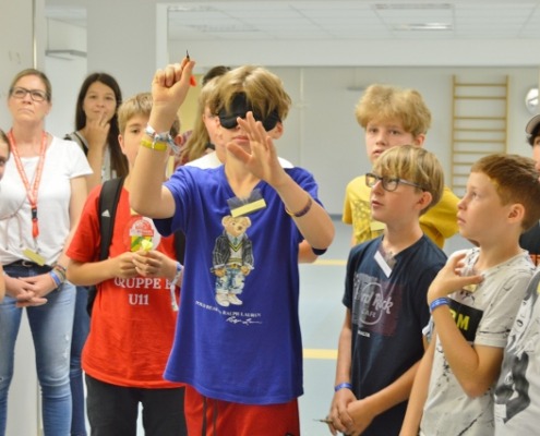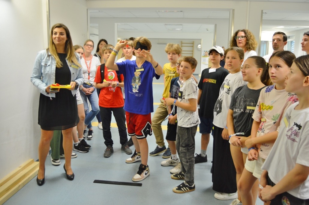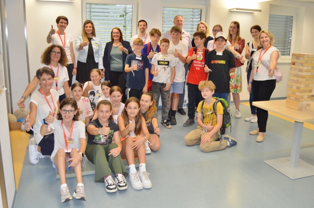 Einen Engagementtag mit allen Sinnen haben einander der Blinden- und Sehbehindertenverband, die Wirtschaftskammer Kärnten und das slowenische Gymnasium ermöglicht: ein Team der WK Kärnten hatte es möglich gemacht, dass sie gemeinsam mit der ersten Klasse des Gymnasiums hierher in die Räumlichkeiten des BSVK kommen und einen besonderen Tag erleben konnten. Nach dem Kennenlernen und einer Einführung in das wichtige und in der Bevölkerung äußerst verbreitete Thema der Sehbehinderungen wurden Teams gebildet. Ausgestattet mit Simulationsbrillen, die ein Verständnis für unterschiedliche Sehkrankheiten und damit verbundenen Einschränkungen des Sehsinns schafften, haben die Mitarbeitenden und Jugendlichen Spiele gespielt: Tischtennis mit dem Gehör zu spielen, Jenga oder Dart – so viele Spiele spielen sich anders, wenn der Sehsinn wegfällt oder eingeschränkt zur Verfügung steht. So wurden die Teilnehmer:innen für das Thema nicht nur sensibilisiert und konnten praktischen Erfahrungen machen, der Tag hat auch wirklich ganz viel Spaß gemacht!