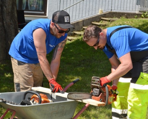 Da wurde die Motorsäge geschwungen, aber auch der Gartenbereich schon fürs große Familienfest hübsch gemacht. Und aus dem alten Zaun wird Brennholz gemacht – Kreislaufwirtschaft einmal anders 😊