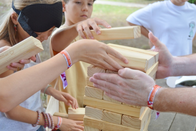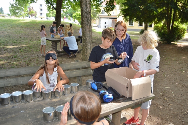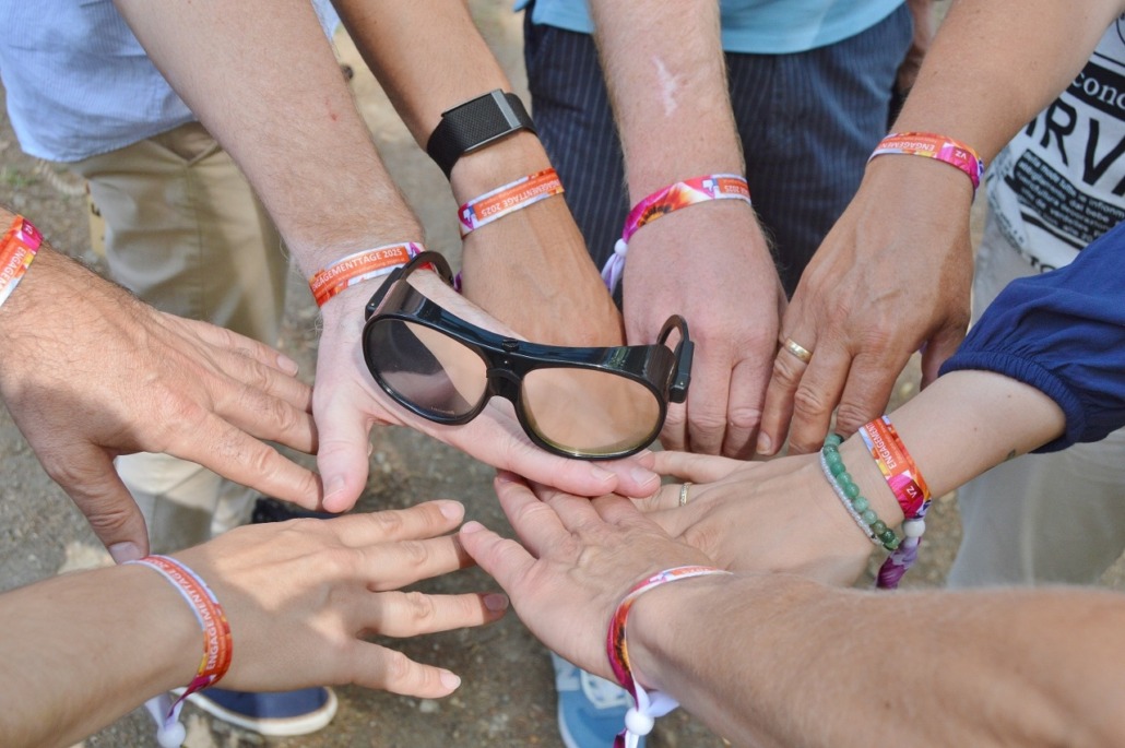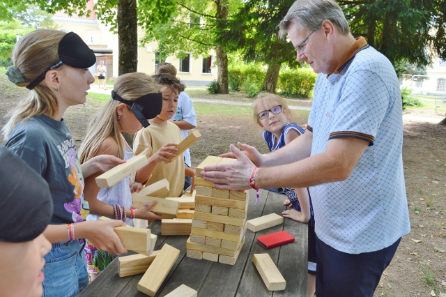 Es wurde mit Simulationsbrillen gekegelt, mit verbundenen Augen wurde Fußball gespielt, wurden Bechertürme gebaut. Es wurden Aufgaben gelöst mit Kopfhörern, die Höreinschränkungen zeigen und ohne zu sehen wurden Jengatürme gebaut – und sie unter lautem Gelächter wieder umfallen gelassen.