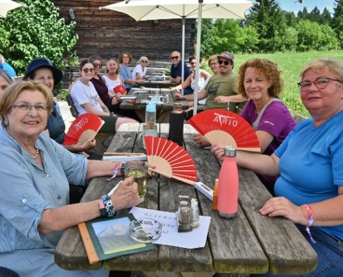 Vom Aichwaldsee aus ging es für ein Firmenteam des ATRIO Villach gemeinsam mit ehrenamtlichen Mitarbeiterinnen der Hospiz- und Alltagsbetreuung der Caritas durch den Wald hinauf Richtung Mittagkogel. Auf einer Anhöhe angekommen, kehrte die Gruppe bei der Buschenschank Ischnighof ein, um sich zu stärken und auszutauschen. Viel Wertschätzung erhielten die Ehrenamtlichen dabei für ihre Unterstützung bedürftiger Menschen, die sie für wenige Stunden in der Woche betreuen, Zeit gemeinsam verbringen und für die sie als Bezugsperson dienen. Viele der zu Betreuenden haben kein familiäres Umfeld, sodass sie Caritas Unterstützung eine wichtige Leistung gegen Einsamkeit und gesellschaftlichen Zusammenhalt darstellt.