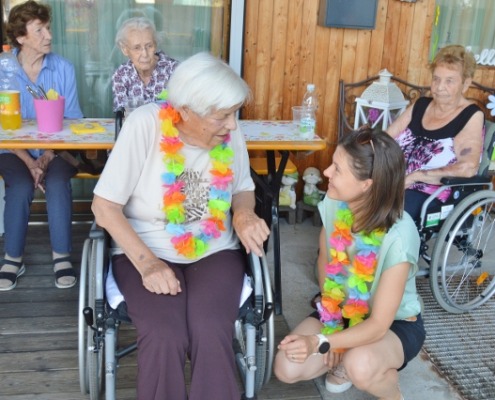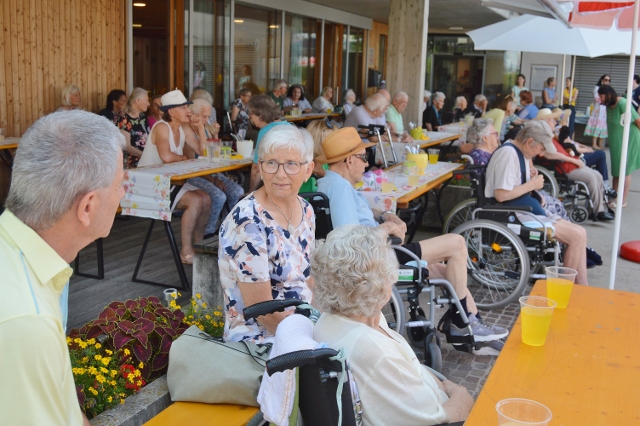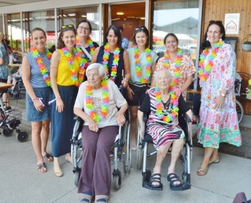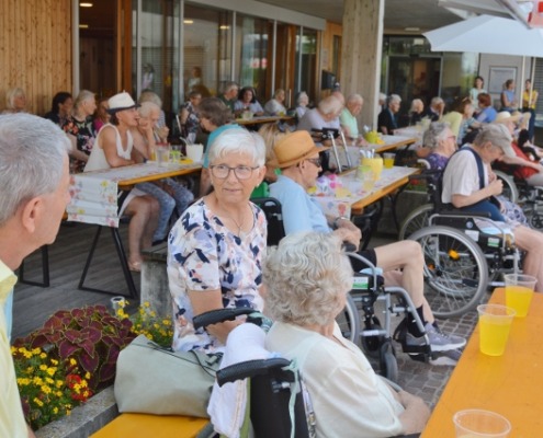 Die betagten Bewohnerinnen und Bewohner hatten schon ihre Plätze an den Biertischen vor dem Pflegewohnhaus Maria Gail der Diakonie de La Tour eingenommen und wurden von den gut gelaunten Mitarbeiterinnen der FH Kärnten gerade mit Getränken versorgt. Die Kolleginnen der Fachhochschule packten beim diesjährigen Sommerfest hier im Haus wieder mit an, damit alles gut vonstatten gehen konnte und sich alle Gäste, die Bewohner:innen und deren Angehörige wohl fühlten. Es ist mittlerweile eine schöne Verantwortung zeigen! Tradition geworden. Birgit Pless war ebenfalls wieder als musikalische Begleitung des Tages dabei und auch die Kinder aus der nahen Schule überraschten und unterhielten die Bewohner:innen mit ihren klingenden Darbietungen. Dass zwei der Kids die Kinder von zwei FH-Mitarbeiterinnen sind, war ein schöner Zufall. Oder vielleicht auch nicht? Weil sich Engagement und Einsatz für andere ja definitiv auch über Generationen weiterträgt…