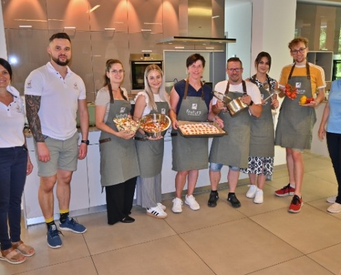 Zu Mittag versammelten sich die Mitarbeiter:innen der Frutura und des Kinderhilfehauses mit den im Gebäude vorübergehend wohnenden Familien zum gemeinsamen Essen und Genießen. Die Leiterin des Hauses Nina Reiterer, zeigte sich dankbar für die Unterstützung des Firmenteams: „Wirklich eine große Hilfe und immer wieder schön, wenn Personen von außerhalb zu uns kommen, uns unterstützen und unsere Arbeit so immer besser kennenlernen.“