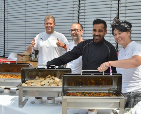 Es war wirklich ein würdiges und großartiges Fest: Das Pflegewohnhaus feierte sein 20 Jahre Bestehen mit einem Fest vor dem Rathaus der Gemeinde Lannach. Mehr als 200 Gäste und viele Ehrengäste konnte das Team des Hauses der Caritas rund um Josef Url begrüßen. Und mittendrin das Firmenteam des Intercity Hotels aus Graz mit Geschäftsführer Stefan Willensdorfer, die die gesamte gastronomische Versorgung der Festgäste an diesem Tag im Rahmen eines Verantwortung zeigen! Engagementeinsatzes übernommen haben. Es wurde gegrillt, es wurden Getränke und Salate angerichtet. Die Arbeit ging Hand in Hand und man konnte die Freude der Hotelcrew spüren, das Pflegewohnhaus an ihrem großen Tag tatkräftig zu unterstützen.