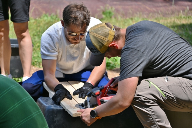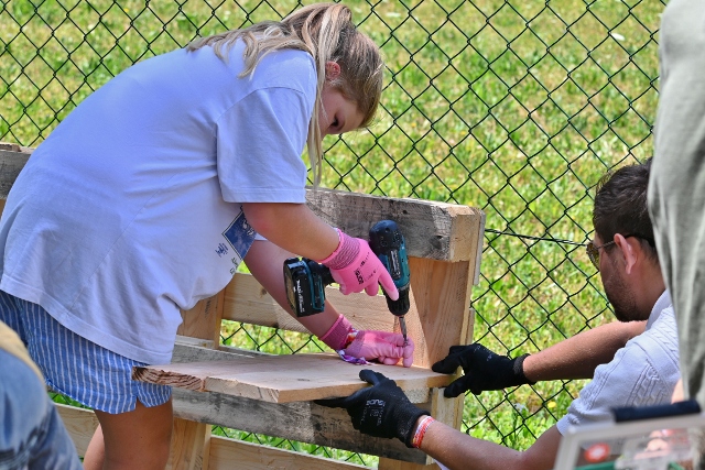 Mit viel handwerklichem Geschick leiteten die Mitglieder der Jungen Industrie die Kinder an, die Paletten abzuschleifen, die Bretten zu verschrauben und vieles mehr – ein großer Spaß und ein tolles Ergebnis bei Partymusik, zu der getanzt und gesungen wurde!