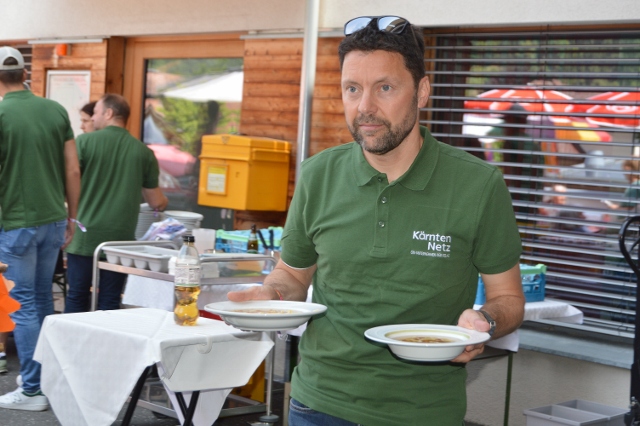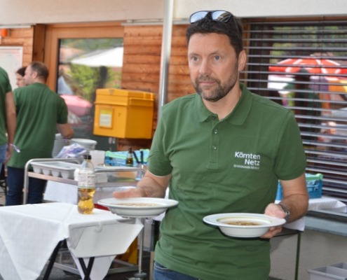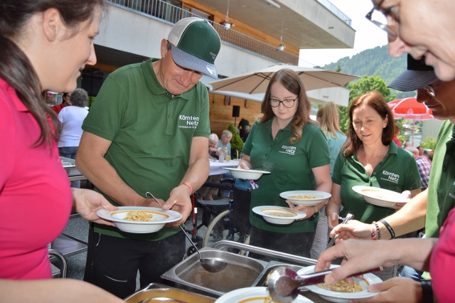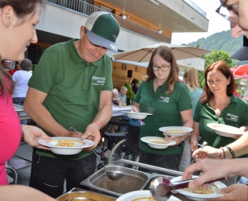 Ein Sommerfest gabs es an diesem Tag im Pflegewohnhaus Haus Elvine der Diakonie de La Tour in Treffen. Damit die Bewirtung der Gäste, das Auf- und Abbauen einfach von der Hand gehen konnte, war ein tatkräftiges Team der Kärnten Netz mit viel Herz im Engagementtag-Einsatz. Und auch musiziert wurde für die Bewohnerinnen und Bewohner!