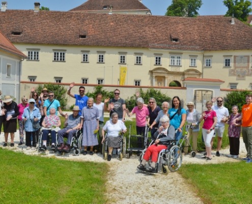 Zum gemeinsamen Ausflug in einen ganz besonderen Kräutergarten führte dieser VZ Engagementtag die Runde der Mitarbeiter:innen der Kärntner Sparkasse und die betagten Bewohnerinnen und Bewohner des Haus Maria der Caritas. Von Bleiburg aus ging es mit dem Bus auf zum Stift St. Paul. Dort wartete der Stiftsgarten mit einer wunderschönen Anlage, einem Springbrunnen, Rosenbeeten. Allem voran aber stand eine Führung durch einen stiftseigenen Kräutergarten am Programm. Majoran, Zitronenmelisse, Lavendel – so viele Gerüche kannten die alten Menschen und sie erinnerten sie an frühere Zeiten.
