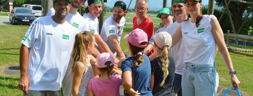 Ein Sommerfest bei richtig heißem Wetter, blauem Himmel und einem Team der Kelag, die mit vielerlei tollen Geschicklichkeitsspielen und Sportstationen hierher nach Treffen ins Haus Herrnhilf der Diakonie de La Tour gekommen waren. Hier haben Kinder quer durch alle Altersgruppen ein Zuhause; der Jüngste ist aktuell drei Jahre alt, wie er bei der Begrüßung gleich stolz erzählte. Alle hatten großen  Spaß beim Hürdenlaufen, beim Balancieren auf der Slackline, bei Schachspielen im Schatten unter Bäumen und beim Geschicklichkeitskegeln mit großen Bällen. Am lustigsten aber waren definitiv die bunten Wasserbomben, die die Kinder als Highlight gleich erkannt haben. Kein Wunder bei dem heißen Wetter…