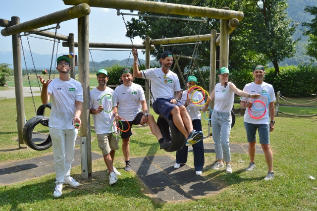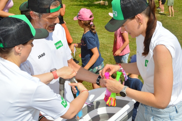 Ein Sommerfest bei richtig heißem Wetter, blauem Himmel und einem Team der Kelag, die mit vielerlei tollen Geschicklichkeitsspielen und Sportstationen hierher nach Treffen ins Haus Herrnhilf der Diakonie de La Tour gekommen waren. Hier haben Kinder quer durch alle Altersgruppen ein Zuhause; der Jüngste ist aktuell drei Jahre alt, wie er bei der Begrüßung gleich stolz erzählte. Alle hatten großen  Spaß beim Hürdenlaufen, beim Balancieren auf der Slackline, bei Schachspielen im Schatten unter Bäumen und beim Geschicklichkeitskegeln mit großen Bällen. Am lustigsten aber waren definitiv die bunten Wasserbomben, die die Kinder als Highlight gleich erkannt haben. Kein Wunder bei dem heißen Wetter…