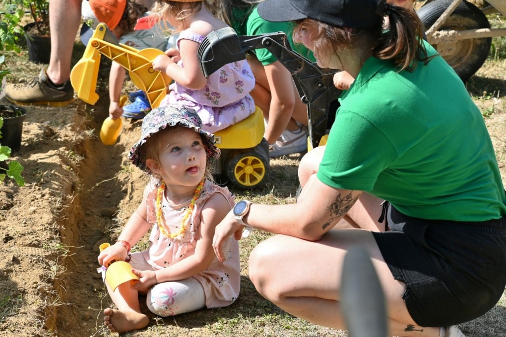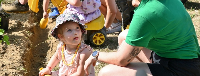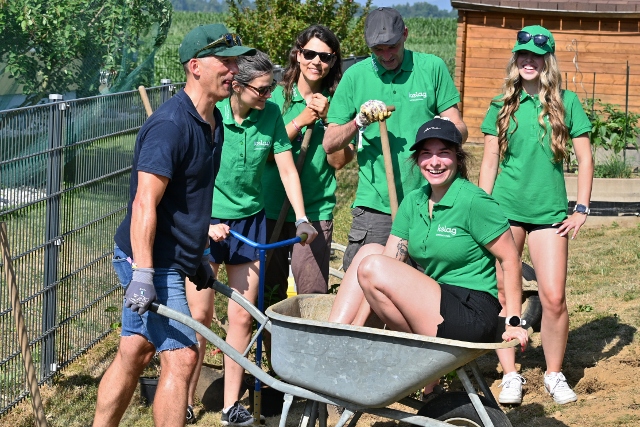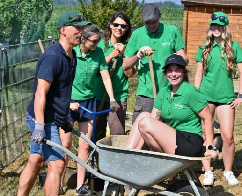 Inmitten der wirbelnden Kinder der KITA Sterntaler des Kindernest in Grafenstein hieß es für das Team der Kelag International bei ihrem diesjährigen VZ Engagementprojekt „anpacken“. Mit Schaufel, Spaten und Gartengerät wurden Löcher für die neuen Beerensträucher gegraben – mit begeisterter Unterstützung der Kinder mit ihrem kleinen Baggern und Schaufeln. Ein wirklicher Spaß, gemeinsam in der Erde zu wühlen! Den hochsommerlichen Temperaturen wurde bei den Jausen- und Trinkpausen getrotzt, miteinander gescherzt und gelacht. Das große Kelag-Team erneuerte zudem im Innenraum Vorhangstangen und erledigte weitere kleine handwerkliche Tätigkeiten. Mit großer Offenheit und Bereitschaft, sich auf die Kinder und das Umfeld einzulassen, wurde dieser VZ-Tag zu einem schönen und erfolgreichen Erlebnis für alle.