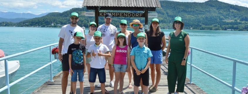 Und das noch dazu in so netter Begleitung. Für die Kinder der Häuser 1 und 6 des SOS Kinderdorf aus Moosburg und deren Begleiter:innen ging es gemeinsam mit einem Team der Kelag an den Wörthersee. Von der Schiffsanlegestelle Krumpendorf aus stieß die lustige Runde in See, im Gepäck gute Verpflegung und viele Spiele, die an Bord auch länger für Unterhaltung sorgen. Anna Lena Röttl und Mario Peterlin, die in der Kelag im Bereich des Nachhaltigkeitsmanagements arbeiten, sind vorne mit dabei und haben den VZ Engagementtag 2025 wunderbar organisiert.