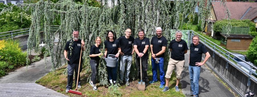 Ein Firmenteam der KNAPP stellte sich der Aufgabe, die Terrasse des Pflegewohnheims Eggersdorf der Caritas mit neuen Pflanzen und Kräuter und Sträuchern zu verschönern, die Bretter der Innenterrasse zu säubern und kleine Arbeiten, wie das Fixieren von Platten auf der Terrasse zu übernehmen.