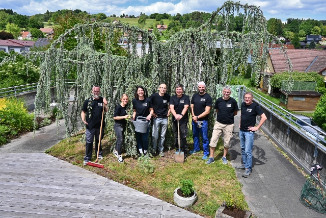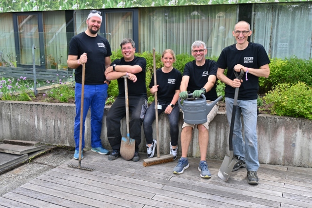 Ein Firmenteam der KNAPP stellte sich der Aufgabe, die Terrasse des Pflegewohnheims Eggersdorf der Caritas mit neuen Pflanzen und Kräuter und Sträuchern zu verschönern, die Bretter der Innenterrasse zu säubern und kleine Arbeiten, wie das Fixieren von Platten auf der Terrasse zu übernehmen.