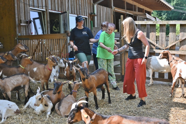 Die Teilnehmer:innen der Tagesförderstätte Voitsberg von LebenGroß machten gemeinsam mit einem Team der Firma KNAPP einen Ausflug auf den Seggauberg zum Antoniushof, um dort die Tierwelt zu bewundern. Der gemeinsame Vormittag führte die Gruppe unter anderem zu den Ponys und Pferden, zu einer Alpakawanderung rund um den Hof und zu den lebendigen, flinken Ziegen.