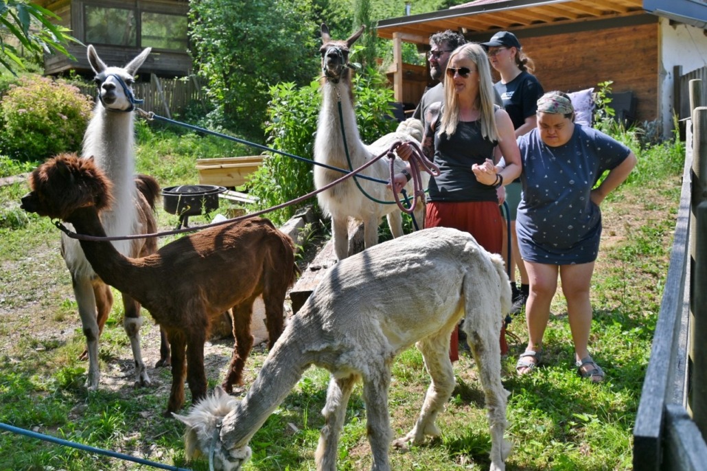 Das Bürsten der Pferde und Führen der Alpakas bei der Wanderung waren die Highlights dieses inklusiven VZ Engagementtages der Mitarbeitenden von KNAPP von den Standorten Dobl und Hart. Die respektvolle und herzliche Unterstützung und Begleitung der Menschen mit Behinderung bei den Aktivitäten und das gegenseitige Kennenlernen hatte neben den tierischen Erfahrungen Priorität. Ein Tag, der schöne Erinnerungen geschaffen hat!