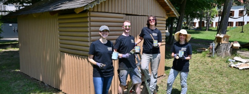 Ein motiviertes Team der Firma KNAPP machte sich an diesem Donnerstag auf den Weg in den Garten des Odilieninstituts in Graz, um der Holzhütte einen neuen Anstrich zu verpassen. Nach dem Säubern und Abschleifen ging es daran, die Hütte neu anzustreichen und zu verschönern. Die Zwischenräume der Bretter forderten Fingerspitzengefühl und Geschick – das Ergebnis spricht für die Talente und Fähigkeiten der Kolleginnen und Kollegen von KNAPP!