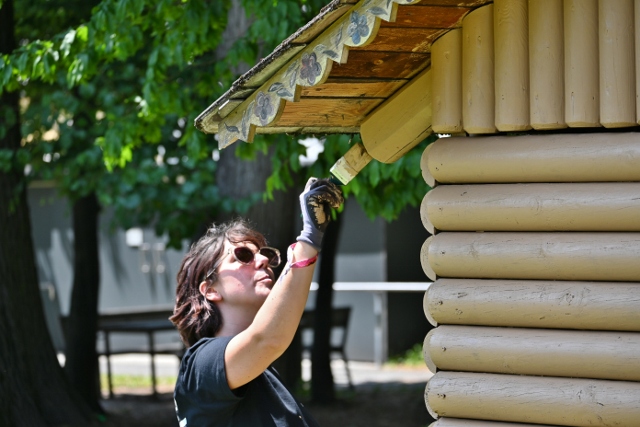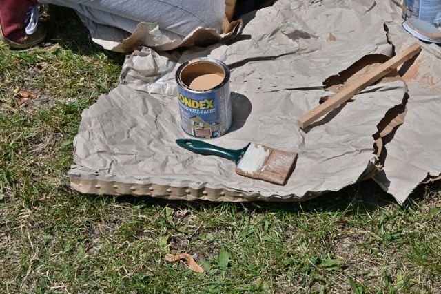 Neuer Anstrich für die Holzhütte im Garten des Odilieninstituts
