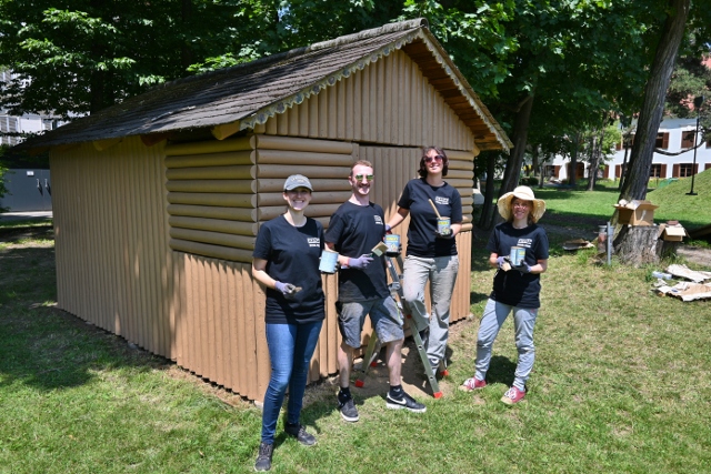 Ein motiviertes Team der Firma KNAPP machte sich an diesem Donnerstag auf den Weg in den Garten des Odilieninstituts in Graz, um der Holzhütte einen neuen Anstrich zu verpassen. Nach dem Säubern und Abschleifen ging es daran, die Hütte neu anzustreichen und zu verschönern. Die Zwischenräume der Bretter forderten Fingerspitzengefühl und Geschick – das Ergebnis spricht für die Talente und Fähigkeiten der Kolleginnen und Kollegen von KNAPP!