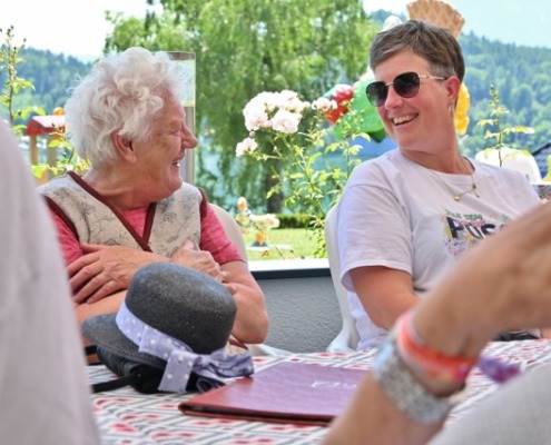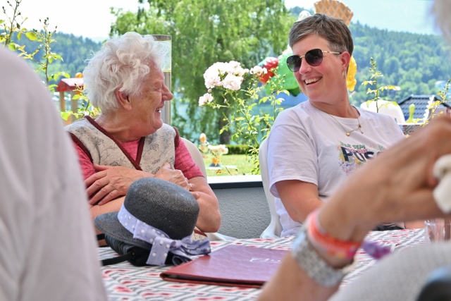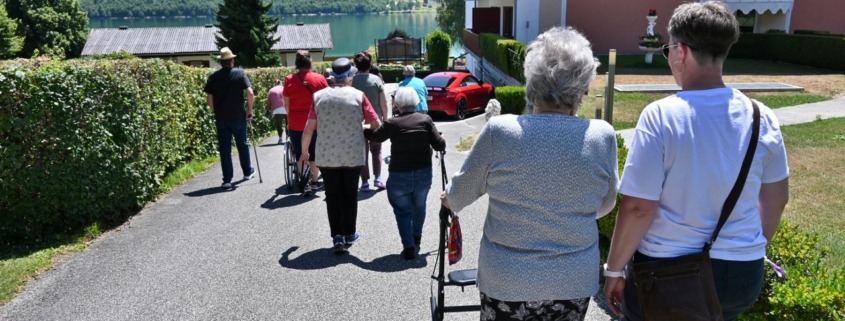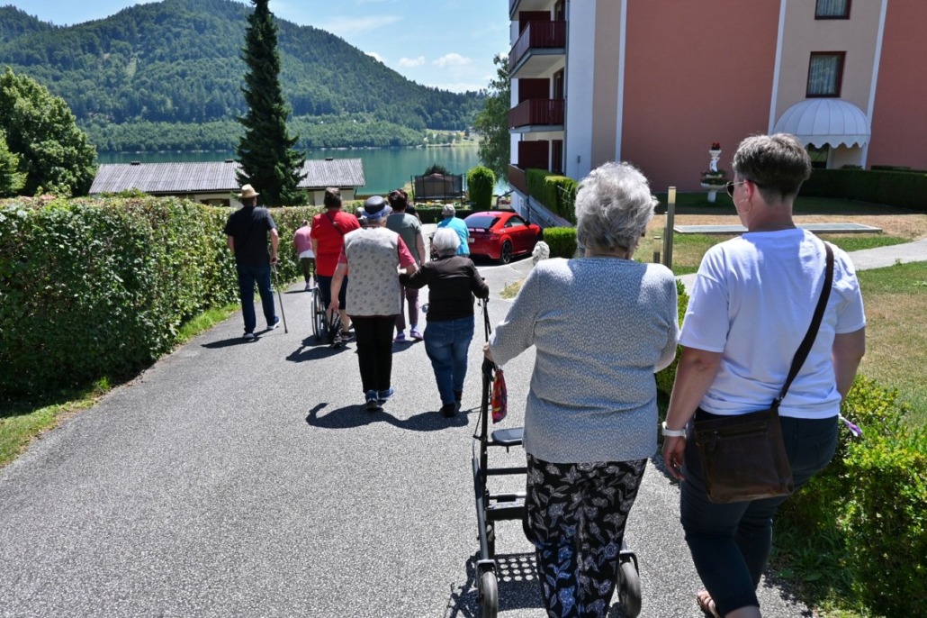 Im Flower-Power-Bus der Nostalgiebahnen ging es für die Senior:innen des Gregorhof der Caritas gemeinsam mit einem Firmenteam der Posojilnica Bank von Bad Eisenkappel aus zum Klopeiner See. Dort angekommen machte es sich die entspannte Runde in einem Café gemütlich und ließ bei einem kühlen Getränk und einem Eisbecher die Seele baumeln. Dieser seltene Ausflug erfreute die betagten Bewohner:innen sichtlich und es wurden Geschichten erzählt und neue Verbindungen geknüpft. Die Mitarbeiter:innen der POSO-Bank hatten ebenfalls ihren Spaß an dieser Verantwortung zeigen! Engagementaktion am schönen Klopeiner See. Neue Gesellschaftsbereiche kennenzulernen erweitert den Horizont und lässt Raum für Reflexion und neue Sichtweisen wachsen – ein Bilderbuch-Projekt bei Sonnenschein und herzlicher Begegnung!