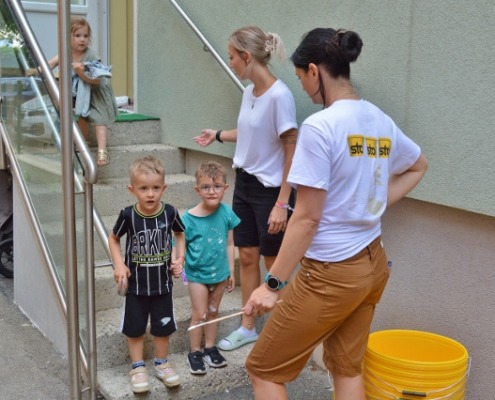 „Eigentlich braucht es uns hier gar nicht“, lacht Hans Rauter von der Firma Sto, „die Kleinen malen eh alles allein.“ Er steht im Eingangsbereich zur Kindertagesstätte Wiff & Bunt der Kindernest in Klagenfurt, neben ihm seine zwei Kolleg:innen, die mit ihm am heutigen VZ Engagementtag aus Villach hierherkommen sind, um die Eingangs- und Garderobenbereich der Einrichtung neu anzustreichen.