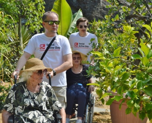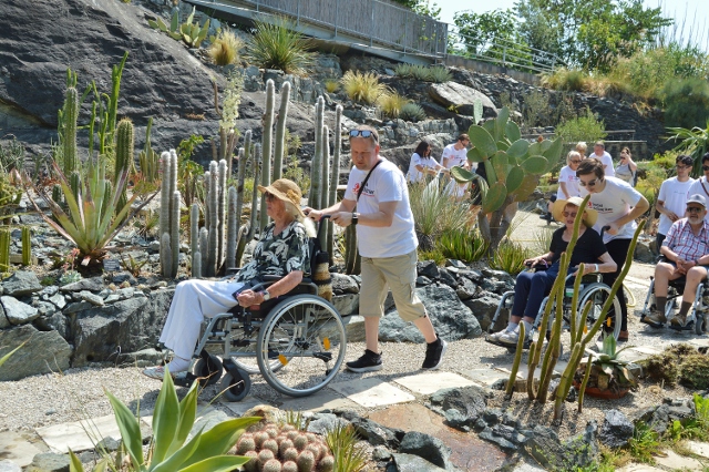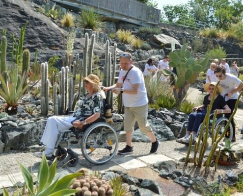 Über 30 Grad im Schatten und der Ausflug passt: Ein Team der Wiener Städtischen Versicherung Kärnten hat sich im Rahmen des gemeinsamen VZ Engagementtages 2025 mit den betagten Damen und Herren des Haus Martha der Caritas zu Fuß auf vom Pflegewohnhaus von der Innenstadt aus aufs Klagenfurter Kreuzbergl gemacht. Zunächst gab es einen Besuch im botanischen Garten, wo die Pflanzen die alten Menschen sichtlich berührten. „So einen Kaktus habe ich mit meinem Mann einmal hierher gebracht, vielleicht ist er es“, hört man erzählen.