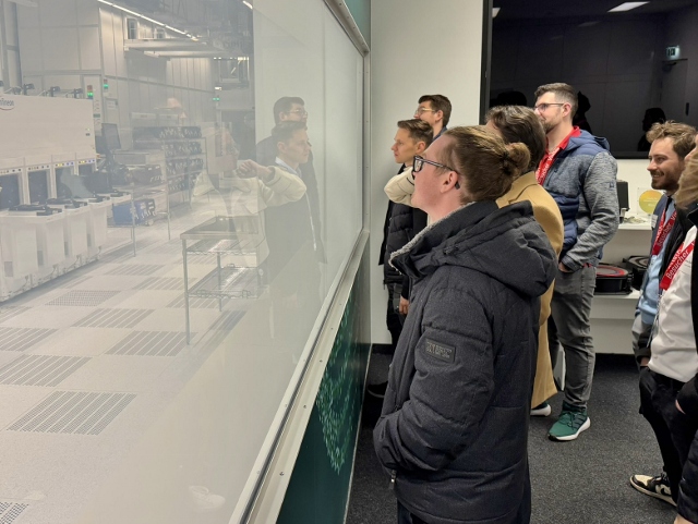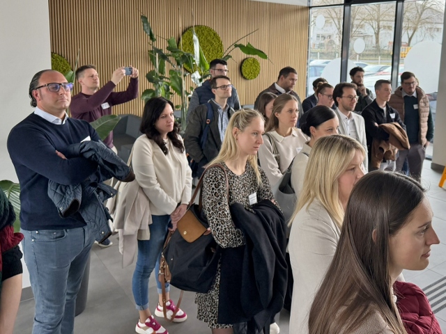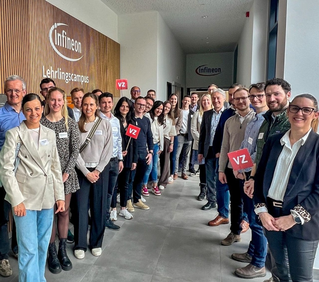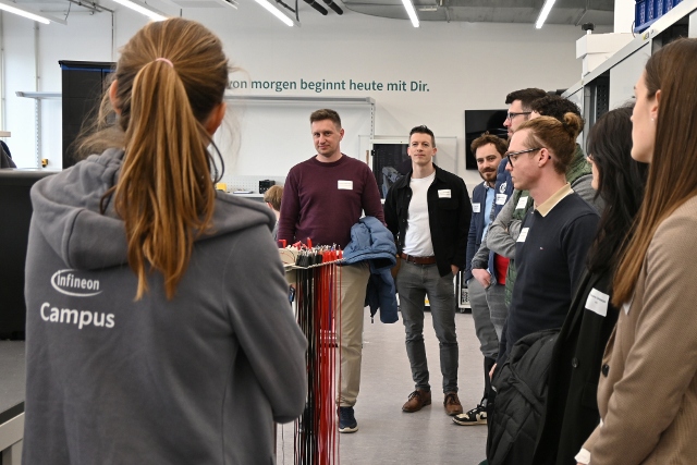 Am Hauptstandort setzte sich der Nachmittag mit weiterem Austausch fort. Neben Einblicken in die Geschäftsfelder und die unternehmerische Ausrichtung von Infineon stand vor allem das Thema Nachhaltigkeit im Fokus. Die Ausführungen von Roman Pöltner, Head of Business Continuity and Sustainability, zeigten, wie technologische Entwicklung und Nachhaltigkeitsbestrebungen zusammen gedacht werden können. Ein besonderer Abschluss war der Besuch des Showrooms mit Einblick in die Produktion der Halbleiter sowie der Rundgang zur neuen Elektrolyseanlage, mit der Wasserstoff für Prozessschritte vor Ort CO₂-neutral produziert wird.