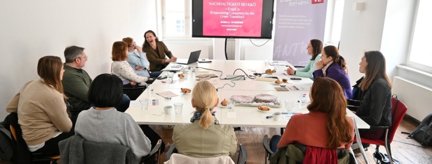 Graz, 20. März 2026. Beim Lernnetztreffen des Netzwerks Verantwortung zeigen! bei Kastner & Öhler stand das Thema Nachhaltigkeitskommunikation & EmpCo im Mittelpunkt. Beim Besuch des Modehauses konnten die Teilnehmer:innen Modelabels und ihre Produktkennzeichnungen hinsichtlich Nachhaltigkeit erkunden und bewerten.