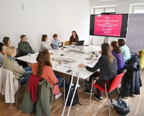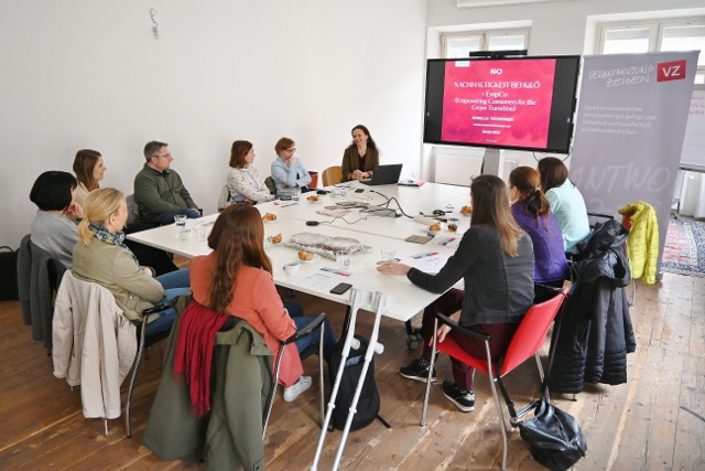 Die Nachhaltigkeitsverantwortliche Isabella Tatzberger begrüßte gemeinsam mit Iris Straßer und Sandra Pschenitschnig Vertreter:innen der Energie Steiermark, PMS-Gruppe, Steiermärkischen Sparkasse, Frutura und Styria. Anlass war neben dem fachlichen Austausch auch die neue EmpCo-Richtlinie, die künftig strengere Anforderungen an die produktbezogene Nachhaltigkeitskommunikation stellt.
