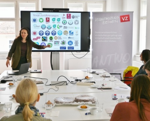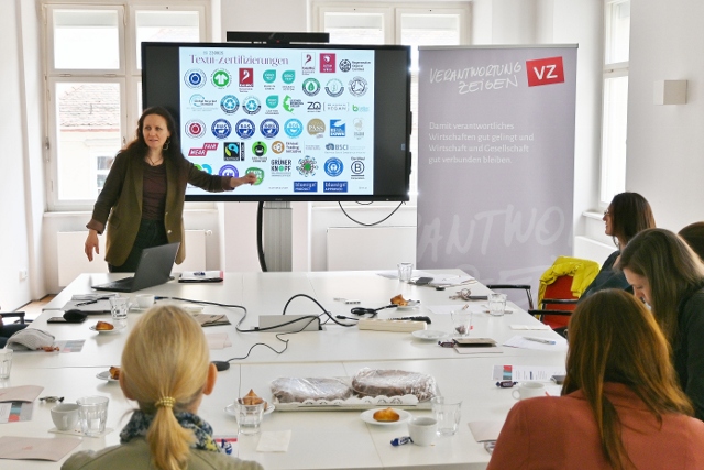 Weitere Themen waren die Rückverfolgbarkeit von Lieferketten, die bislang von Herstellern nur vereinzelt umfassend umgesetzt wird, sowie Maßnahmen zur Ressourcenschonung: Von der Kampagne „Second First“ bis zum Einsatz von ozoniertem Wasser, durch das Reinigungsmittel stark reduziert werden konnten. Auch das Textilrecyclingprojekt „Stoff für die Zukunft“ in Kooperation mit Saubermacher wurde vorgestellt. Im Fokus stand auch die Bedeutung von Nachhaltigkeitssiegeln: Künftig sind nur noch unabhängige, „open to all“-Zertifizierungen zulässig. Mit GOTS und Fair Wear wurden relevante Standards und Initiativen präsentiert.