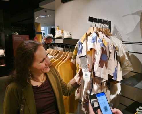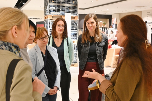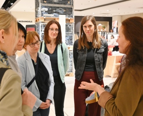 Dann bot der Rundgang durch das Kaufhaus praxisnahe Einblicke in Labels und Nachhaltigkeitskennzeichnungen, bei der die Teilnehmenden nachhaltige Mode und deren glaubwürdige Präsentation und Kommunikation aus Kunden- und damit auch Stakeholdersicht wahrnehmen und bewerten konnten.