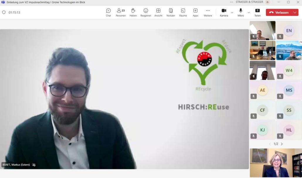 Der VZ Impulsnachmittag lud die knapp 35 Teilnehmenden ein, in zwei der zentralen Säulen der Transformation unseres Energie- und Wirtschaftssystems einzutauchen: in die Kreislaufwirtschaft und den Aufbau einer Wasserstoffinfrastruktur. Dazu wurden zunächst das Forschungsprojekt „H2GreenFUTURE“ von Prof. Wolfgang Werth und Alexander Berndt der FH Kärnten sowie der Umbau des bestehenden Gasnetzes von Karl Schoaß, von der Kärnten Netz auf die kommenden Energieträger Wasserstoff vorgestellt. Im zweiten Teil, der sich mit dem Thema Kreislaufwirtschaft befasste, präsentierten zunächst Neža Einspieler und Verena Ogris von der Wirtschaftskammer Kärnten das Interreg-Projekt VIRIDI, als Abschluss gab es einen Praxisbeitrag der Hirsch Servo AG über die Bestrebungen des Unternehmens, die Erzeugnisse möglichst im Kreislauf zu halten.
