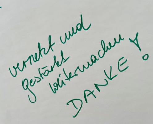 Mit Engagement, Offenheit und dem Mut, einfach zu tun, entsteht Schritt für Schritt echte Wirkung. Daher heißt es im Sinne des Zitates einer Teilnehmerin: Vernetzt und gestärkt weiter machen. Danke!