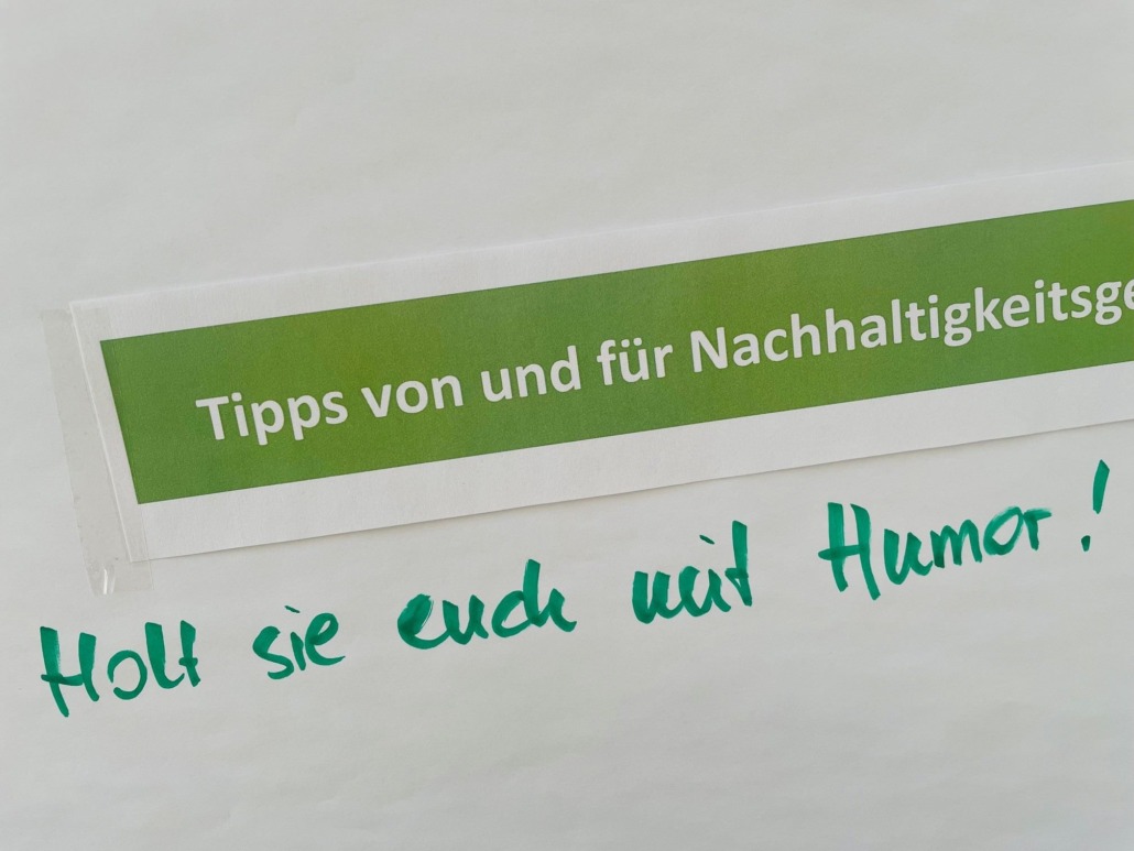 Abschließend gaben die Teilnehmenden einander Tipps unter dem Motto „von und für Nachhaltigkeitsverantwortliche“: