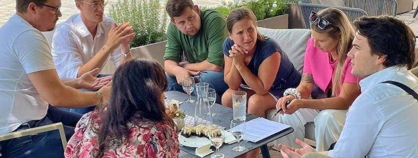 Nach dem gemeinsamen Plenum und den anregenden Vorträgen am Vormittag formierte sich die Gruppe der „Jungen Mitdenker:innen“ und es wurde – auch jung moderiert durch VZ – intensiv über die Themen KI, Klimawandel sowie den Wertewandel diskutiert. Die Expertisen und Sichtweisen aus den jeweils eigenen Unternehmensperspektiven wurden eingebracht und so verschiedene Blickwinkel besprochen. Auf diese Weise war es möglich, das eigene Arbeitsfeld reflektiert zu betrachten und Raum für neue Ideen zu schaffen.