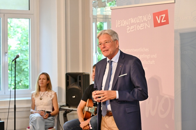 Eingeleitet durch die Klänge von Acoustic Soul – Gerith Sommer und Markus Zlöbl – begann Gastgeberin Iris Straßer, Geschäftsführerin von VZ mit dem Motto diesen Jahres und mit den Anliegen der Flower-Power-Bewegung aus den späten 60er und frühen 70er Jahre des letzten Jahrtausends. Diese griff der Landeshauptmann in seinen Eröffnungsworten auf: Frieden, Liebe, Freiheit und auch Solidität seien nach wie vor jene Werte, für die es gemeinsam einzustehen gelte. Kaum ein Netzwerk verbinde die Gesellschaft so wie es im Verantwortung zeigen! Kreis ganz selbstverständlich sei. Und dies zeigte sich auch in der Gästeliste des Abends – vom Landesdirektor der Wiener Städtischen und den Geschäftsführern der Kelag Energie und Wärme bis zu Rektorin der Diakone de La Tour, der Präsidentin des Hilfswerks und Direktor der Caritas, dem Landesamtdirektor bis zum Dompfarrer – alle Teile der Gesellschaft waren auf Augenhöhe vereint. Das Team von VZ um Iris und Martin Straßer und Angela Rosenzopf-Schurian konnte sie alle begrüßen.