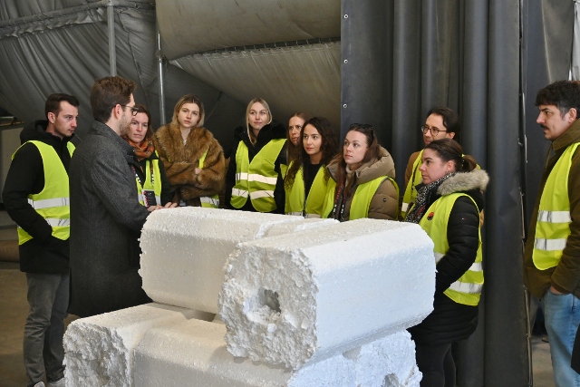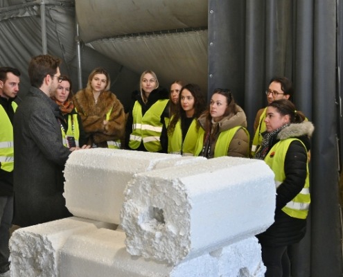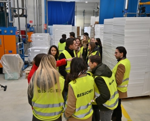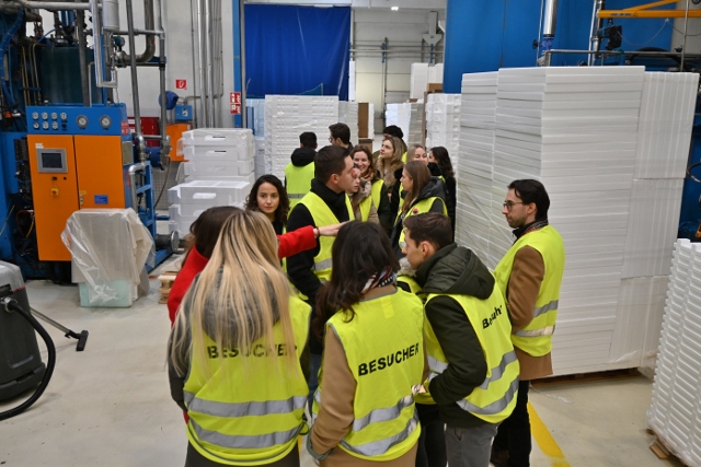 Ein Highlight der Betriebsführung war der Compactor als wichtiger Baustein für Kreislauffähigkeit im EPS*-Bereich. Er eröffnete den Rundgang durch die Produktionshallen und machte die einzelnen Prozessschritte greifbar. Neben der Herstellung von EPS-Dämmstoffen und -Verpackungen zeigte HIRSCH auch Verpackungslösungen aus Faserguss, die das Portfolio sinnvoll ergänzen.