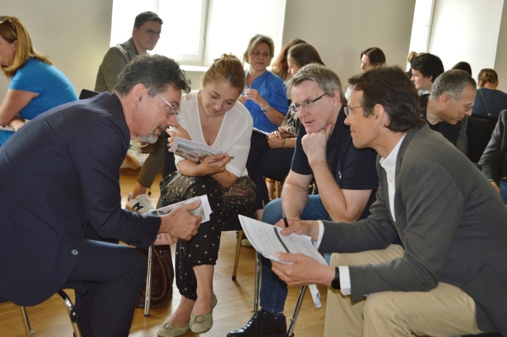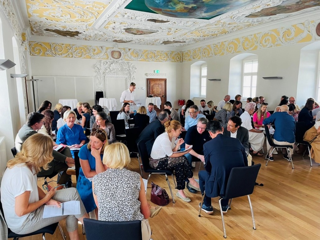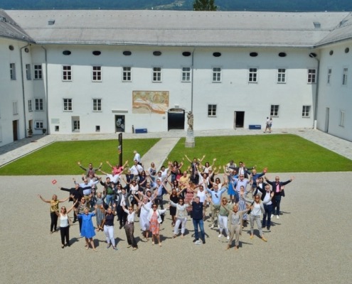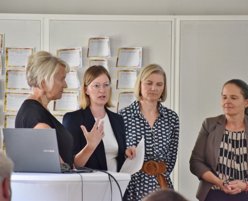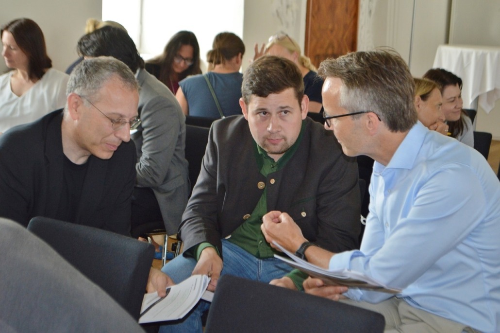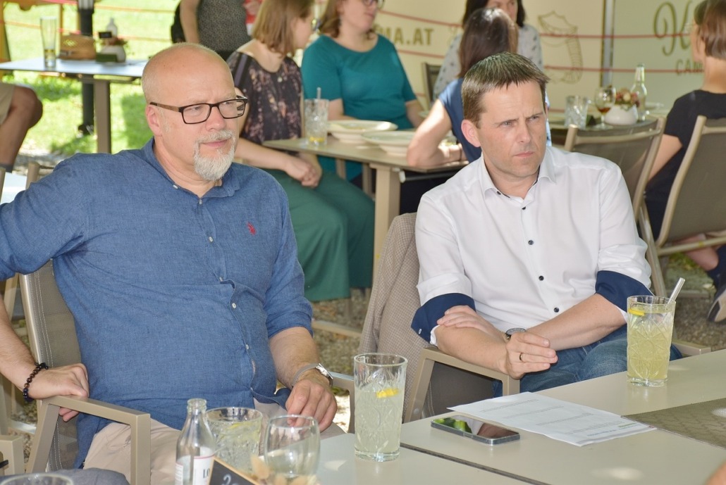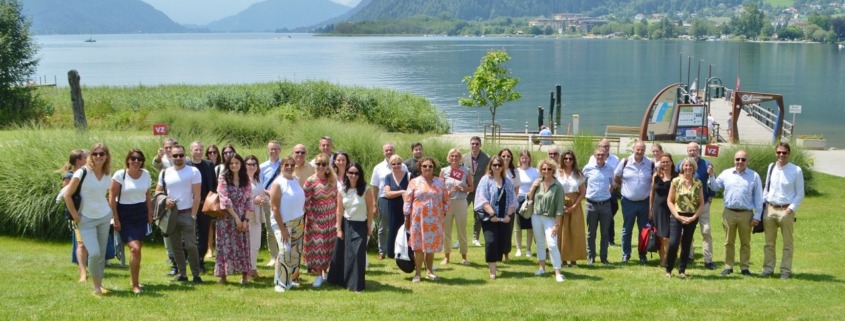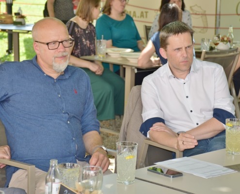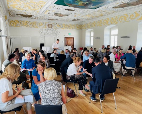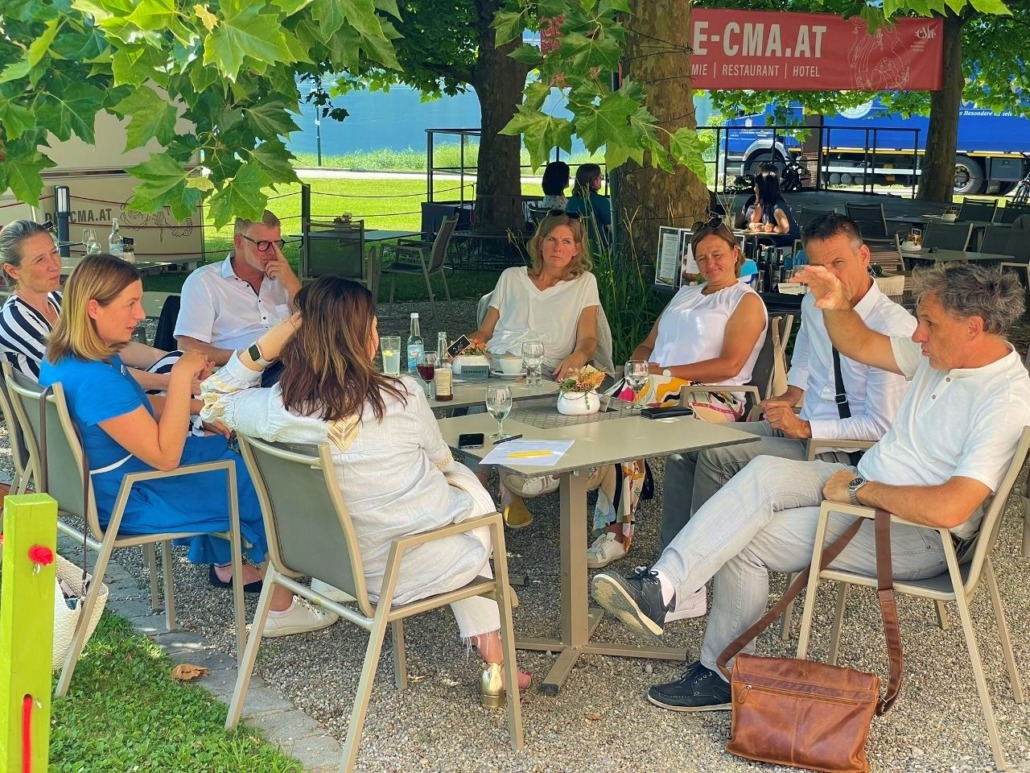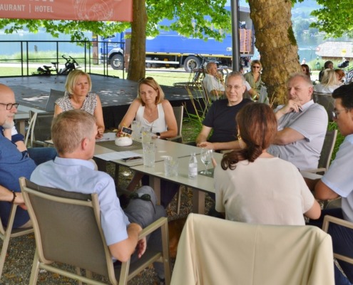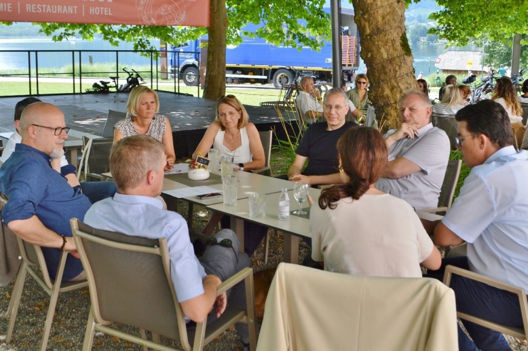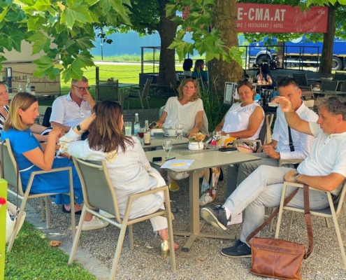 Nachmittags teilten sich die EntscheidungsträgerInnen und UmsetzerInnen in Themengruppen zu Klimawandel, Wertewandel und Künstlicher Intelligenz auf und widmeten sich im Grünen mit Blick auf den Ossiacher See der gemeinsamen Lösungssuche. Dabei wurden sowohl langfristige Perspektiven und Potentiale erörtert, als auch unmittelbar nächste Schritte erarbeitet und kooperative Quick Wins und positive Erfahrungen ausgetauscht. Auch die jungen MitdenkerInnen stellten abschließend im Plenum ihre Diskussionsergebnisse vor und formulierten den Wunsch nach Fortsetzung des Dialoges in dieser Runde.