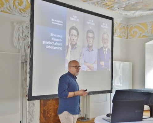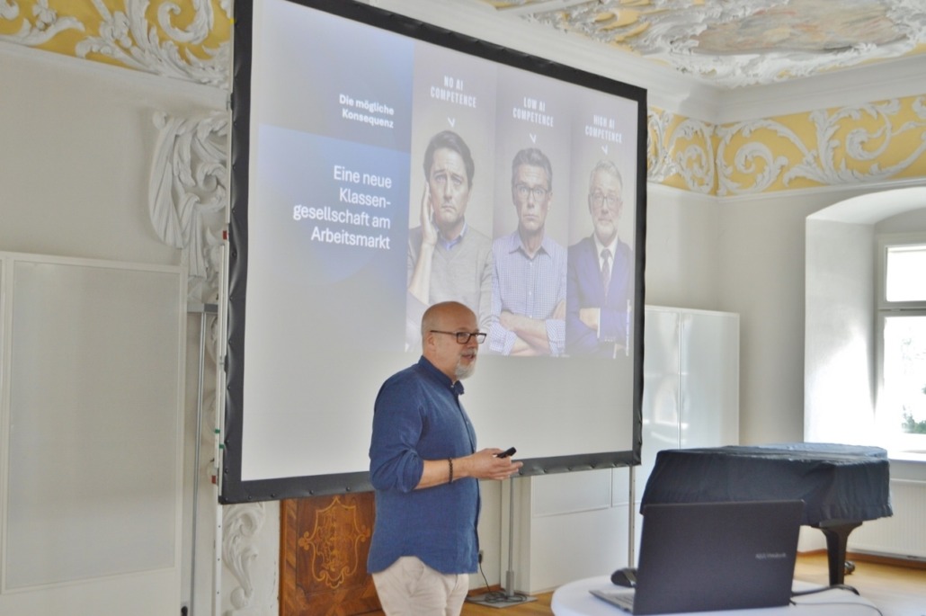 Der Vormittag war geprägt von diskussionsanregenden Impulsen. Alexander Schwarz-Musch, Leiter des Masterstudiengangs Business Development an der FH Kärnten referierte zu aktuellen Entwicklungen und Herausforderungen der Künstlichen Intelligenz und deren Konsequenzen auf individueller, unternehmerischer und gesellschaftlicher Ebene. „Nicht die KI wird die Menschen ersetzen, sondern jene Menschen, die KI nutzen, werden jene ersetzen, die dies nicht tun.“ Ulrich Pöschl, Direktor am Max-Planck-Institut zeigte den Stand im Klimawandel und mahnte ein: „Es liegen ausreichend klare Fakten vor, es ist längst Zeit zu handeln.“ Und die Präsidentin der Caritas Österreich Nora Tödtling-Musenbichler regte an, den Wertewandel als Chance und Grundlage der Kulturentwicklung im Unternehmen zu nutzen. Denn „der Mensch ist gut und Werte sind wertvoll.“