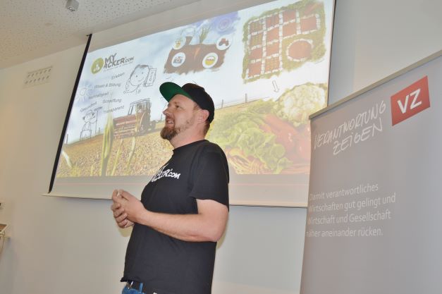 Der zweite Impuls boten der Gründer und Geschäftsführer von myAcker Christoph Raunig und die Kommunikationsverantwortliche Kathrin Angermann. „Es war ein ständiges Nach-Vorne-Gehen in den letzten Jahren. Vom digitalen Gemüseacker entwickelt sich unsere Identität von einem Start-up hin zu einem etablieren Unternehmen mit Angeboten mit sozialem Mehrwert, immer in der Region für die Region“, so Christoph Raunig So gibt es seit einem Jahr die erste MyAcker-Filiale ‚myAcker+‘ auf der Laßnitzhöhe nahe Graz in der Steiermark, betrieben in Kooperation mit der Lebenshilfe. Menschen mit Behinderung bekommen so eine gute Arbeit und andere betreute Menschen können digital ihre Gemüse anbauen und vertiefen so ihre Digitalkompetenz. Aber auch Firmen- oder Schülerteams können dort ihre ‚Teamgärten‘ anlegen. Eine Kooperation mit reichlich Mehrwert also – entstanden übrigens aus einer Verantwortung zeigen! Veranstaltung. „Wir haben aus dieser Zusammenarbeit mit dem Team der Lebenshilfe sehr viel gelernt und sie bereichert unsere Arbeit“, sind Christoph und Kathrin einig.